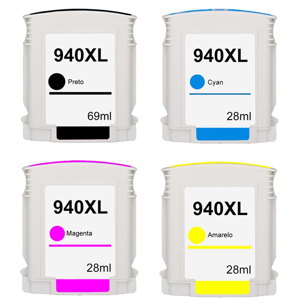 Kit 4 Cores de Cartucho de Tinta Compatível 940XL 940 para HP 8000 8000WL 8500 8500W
