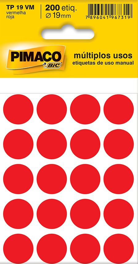 Etiqueta Redonda TP-19 19 mm (Vermelha) 200 Etiquetas - Pimaco