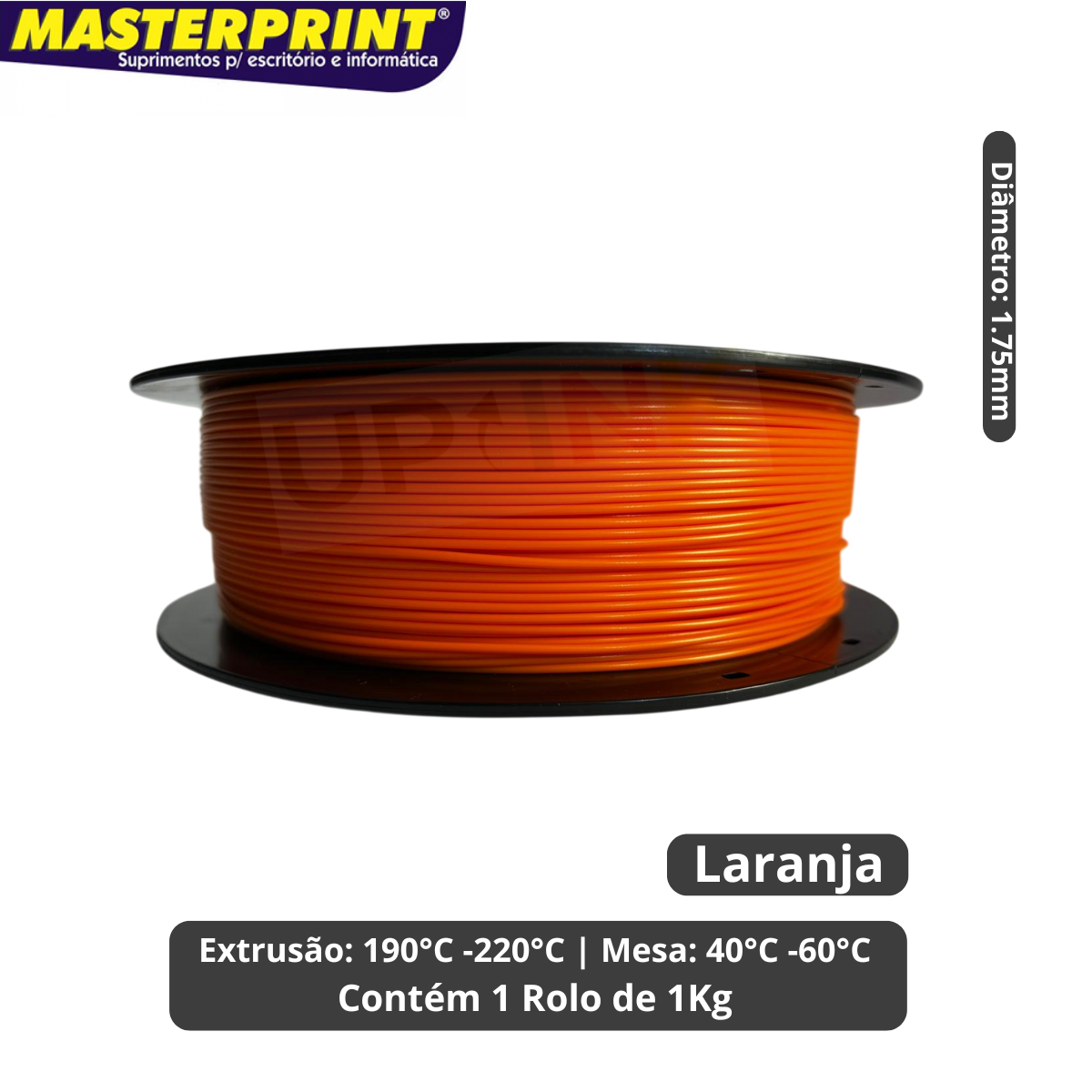 Filamento 3D PLA New Laranja 1.75mm 1kg Cor Brilhante Textura Macia Masterprint Filamento 3D