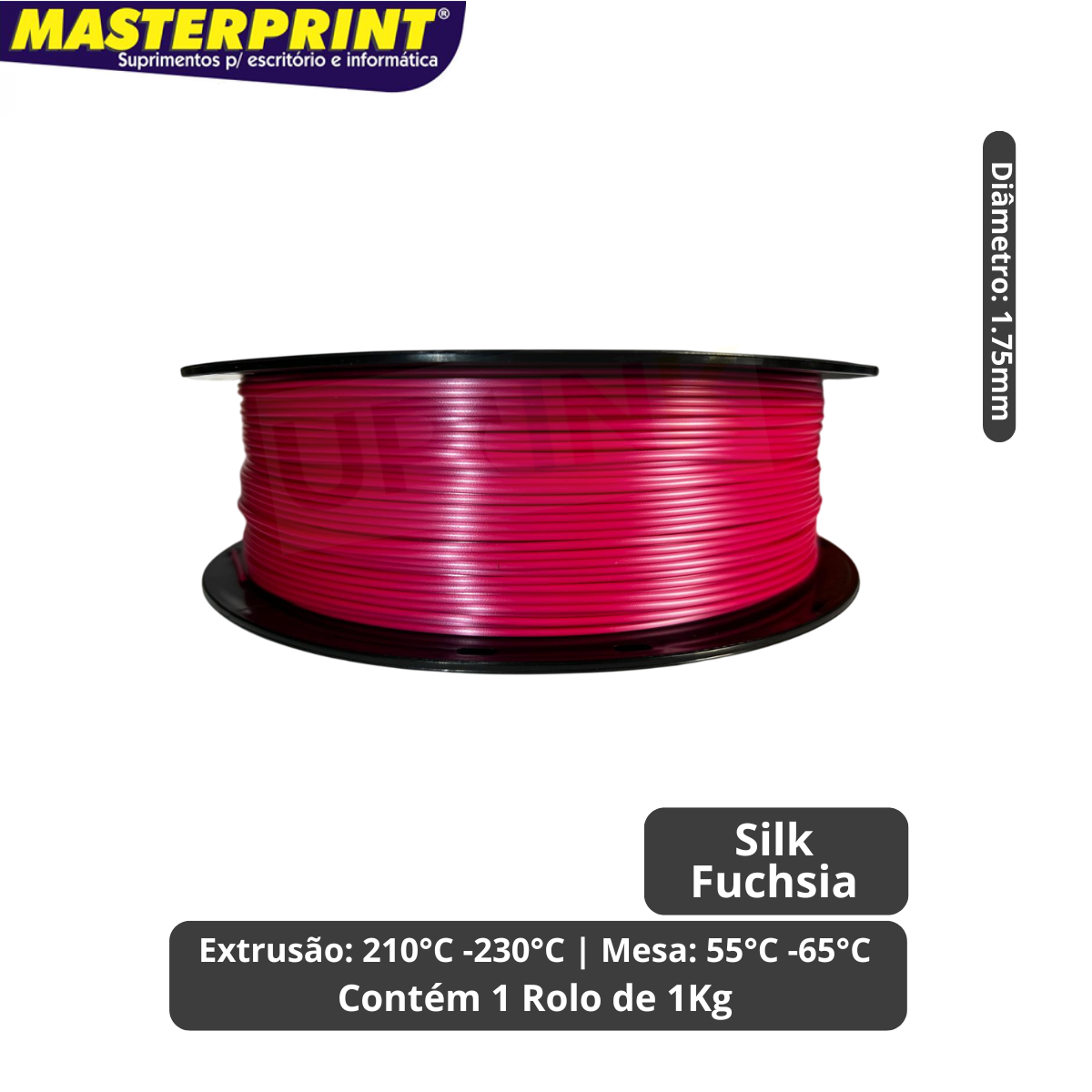 Filamento 3D PLA Silk Fuchsia 1.75mm 1kg Cor Brilhante Textura Macia Masterprint Filamento 3D