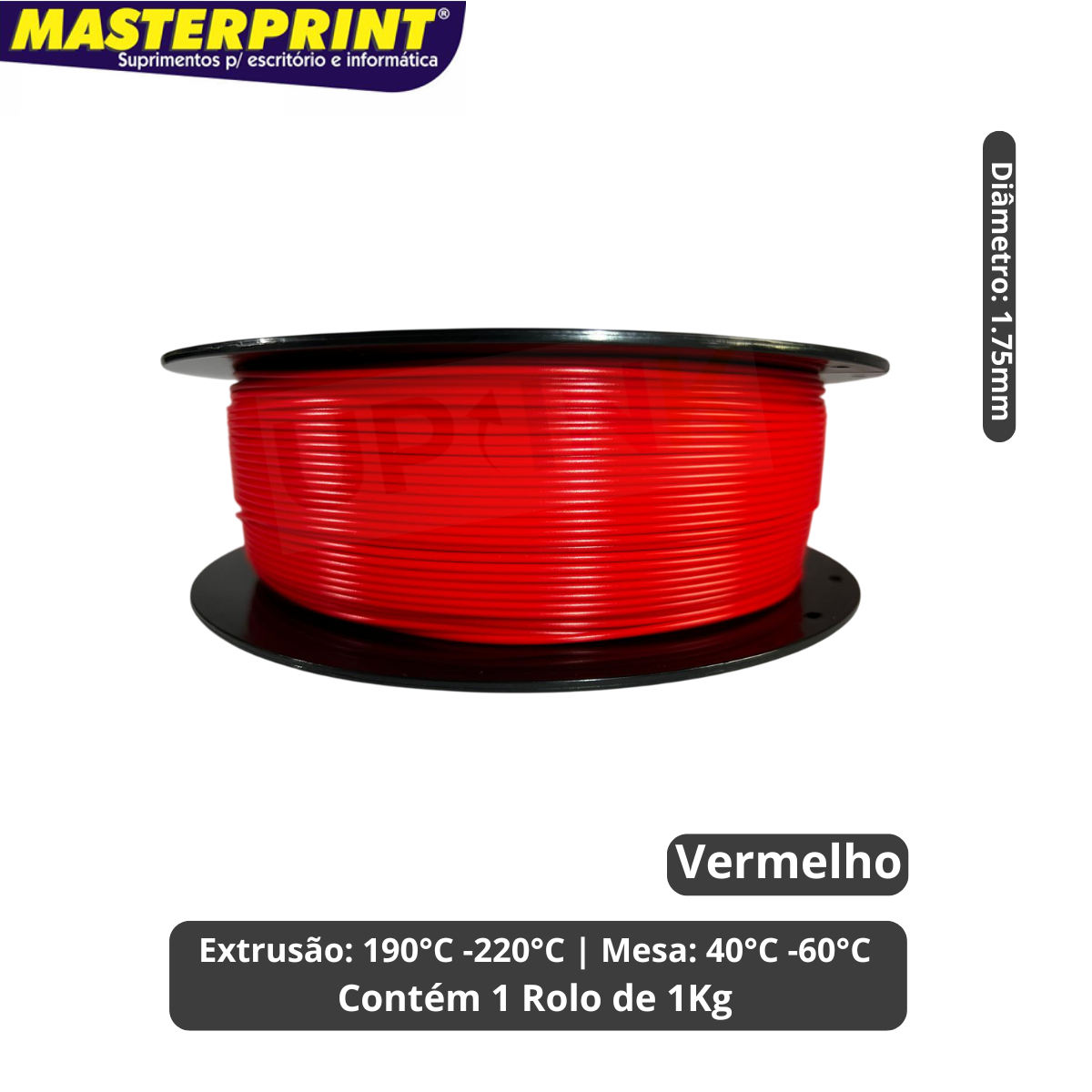 Filamento 3D PLA Vermelho 1.75mm 1kg Cor Brilhante Textura Macia Masterprint Filamento 3D