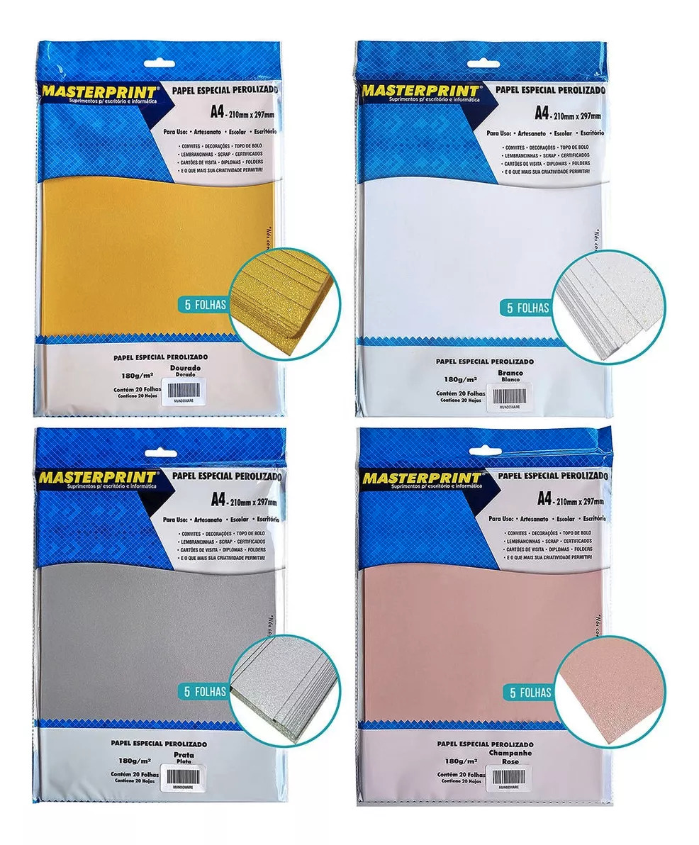 PAPEL MIX 4 CORES PEROLIZADO/ARTESANATO 180G A4 - 20 FLS