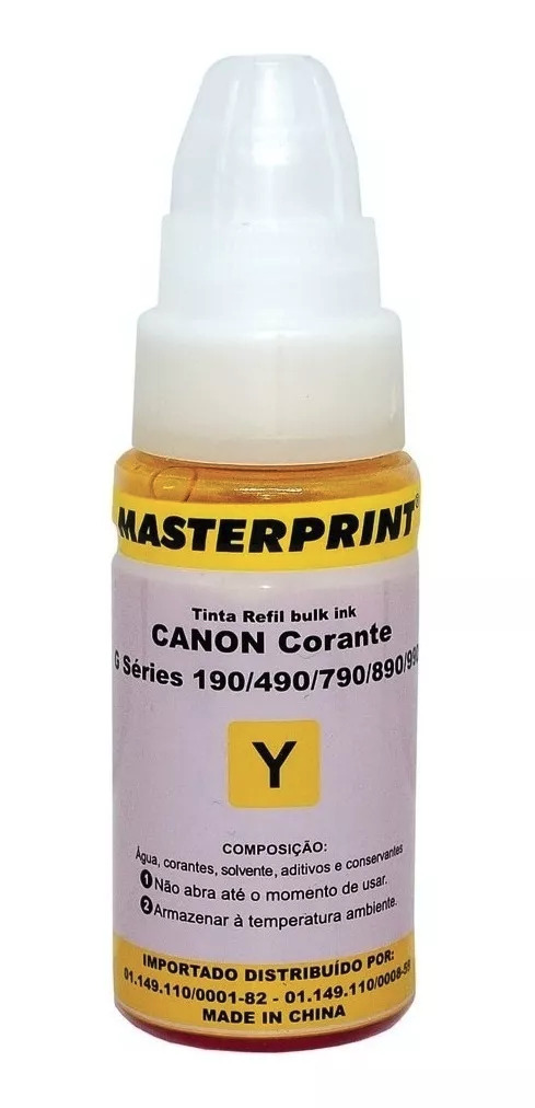 Tinta Yellow Corante Compatível para Canon Ecotanque Pixma GI-190 G1100 G2100 G3100 70ml